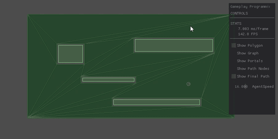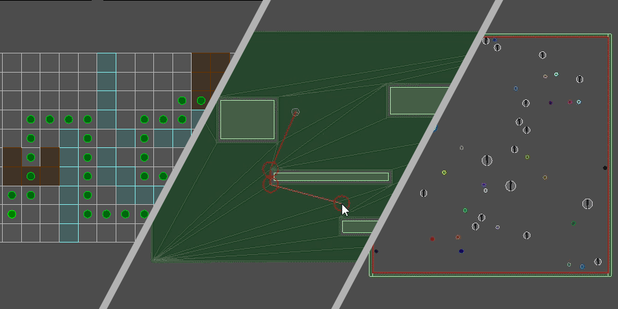 A Navigation mesh are a bunch of connected triangles that go around in accessible places. Using A* and a way to create a connection graph we can upgrade our path finding algorithm to a 2D/3D space and increase precision