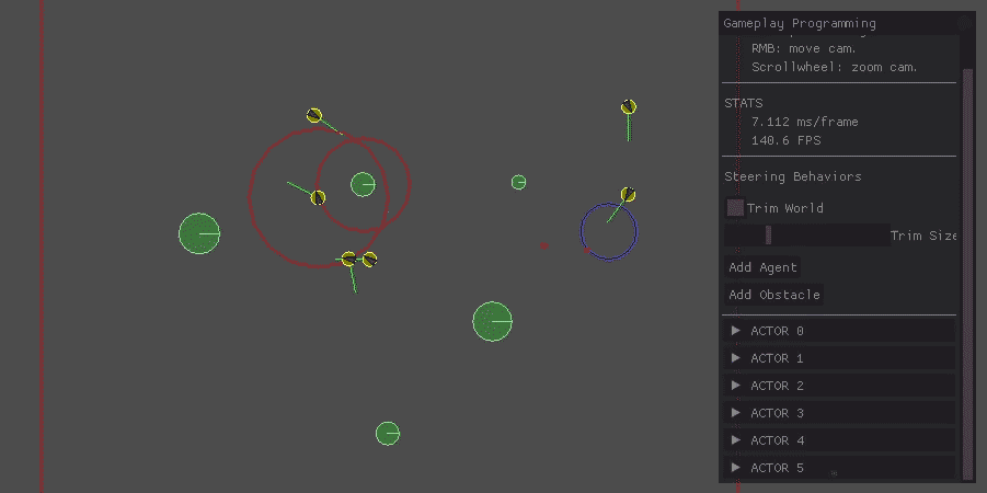 For the first lesson we had to create multiple different simple steering behaviours which would steer an actor in a certain direction. Some examples are:
